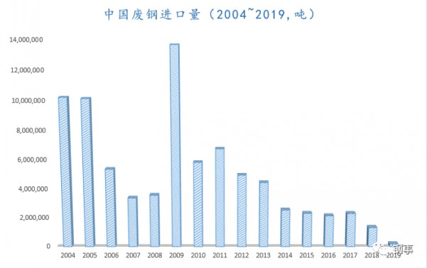 聯(lián)合國國際貿(mào)易中心的數(shù)據(jù)還顯示,2019年中國進口廢鋼18.427萬噸,較2018年的134.27萬噸減少86%。