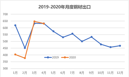 當(dāng)前,鋼材出口企業(yè)面臨著國際市場需求銳減、在手訂單取消或延期、新接訂單大幅下降等諸多困難。4月份,中物聯(lián)鋼鐵物流專業(yè)委員會發(fā)布的鋼鐵行業(yè)PMI新出口訂單指數(shù)為27.8%,雖較上月上升0.5個百分點,但依然在收縮區(qū)間低位運行;同期,蘭格鋼鐵云商平臺調(diào)查的鋼鐵流通企業(yè)PMI指數(shù)顯示,4月份來自鋼貿(mào)企業(yè)的新出口訂單指數(shù)為45.9%,較上月下降1.5個百分點,在收縮區(qū)間繼續(xù)回落。反映來自鋼鐵生產(chǎn)企業(yè)和貿(mào)易企業(yè)的出口訂單均呈現(xiàn)下降趨勢,預(yù)計鋼材新出口訂單減少的影響將在后續(xù)幾個月里逐步顯現(xiàn),5月份我國鋼材出口仍將承壓前行。(蘭格鋼鐵研究中心 王國清 原創(chuàng)文章,轉(zhuǎn)載務(wù)必注明出處)