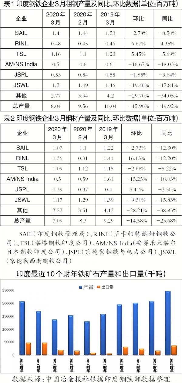 新冠肺炎疫情在印度暴發(fā)以來,受國內需求減少和封鎖影響,印度鐵礦石產銷和價格都受到了影響。