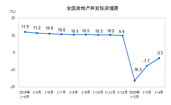 2020年1-4月全國房地產(chǎn)開發(fā)投資同比下降3.3%