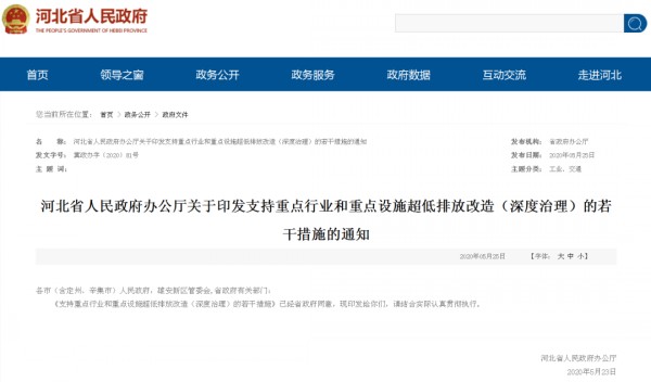 《河北省人民政府辦公廳關(guān)于印發(fā)支持重點(diǎn)行業(yè)和重點(diǎn)設(shè)施超低排放改造(深度治理)的若干措施的通知》解讀