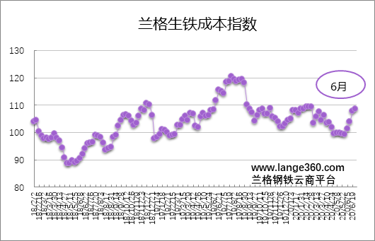 圖1 蘭格生鐵成本指數(shù)走勢圖
