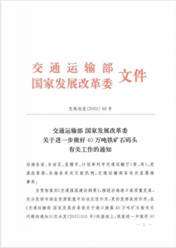 實(shí)際上,根據(jù)下文所附的《通知》全文,我們可以看到除了日照嵐山港區(qū)嵐橋礦石泊位外,還有煙臺(tái)西港區(qū)一期工程礦石泊位、日照鋼鐵精品基地項(xiàng)目配套礦石泊位和寧德三都澳港區(qū)城澳作業(yè)區(qū)1號(hào)礦石泊位等共計(jì)四個(gè)40萬噸級(jí)泊位獲批。