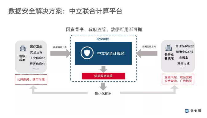 大數(shù)據(jù)聯(lián)合計算平臺在保證客觀公立性上,采用了政府主導、國資參股、多方控股的模式,并且利用先進技術(shù)保障數(shù)據(jù)計算和流轉(zhuǎn)全過程的公平透明,實現(xiàn)數(shù)據(jù)所有權(quán)和數(shù)據(jù)使用權(quán)分立,做到開放數(shù)據(jù)“可用不可擁”,解決數(shù)據(jù)交互的信任和隱私保護問題,促進企業(yè)之間、企業(yè)同公共部門之間的數(shù)據(jù)共享融合。