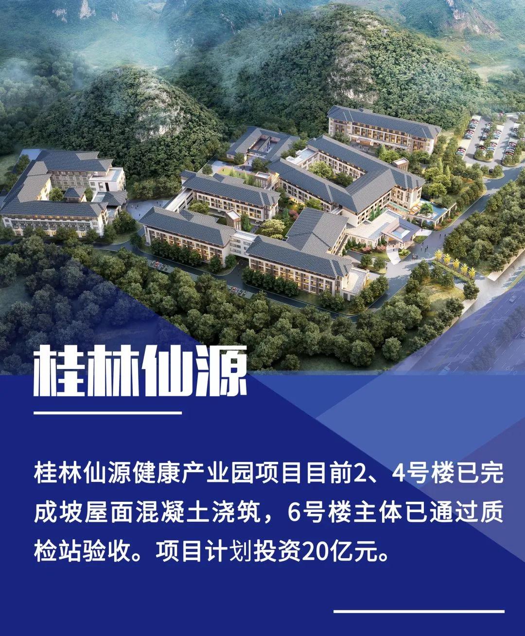 該項目是桂林國家健康旅游示范基地建設重點項目,也是國家首批城企聯(lián)動普惠養(yǎng)老項目。項目計劃投資20億元,建設床位4600張,包括高端會員養(yǎng)生中心、五星級養(yǎng)生酒店、康復中心、體檢中心、母嬰照護中心、幼教中心,配套中醫(yī)藥文化大觀園、國學堂、老年大學、大型超市、電影院等。