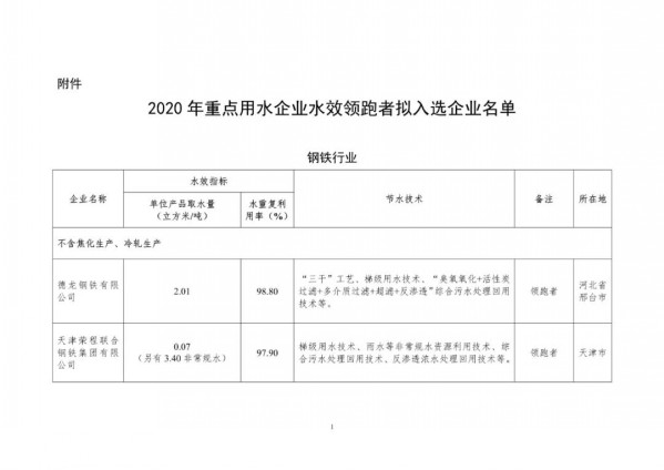 4家鋼鐵企業(yè)進(jìn)入擬入選的水效領(lǐng)跑者企業(yè)名單