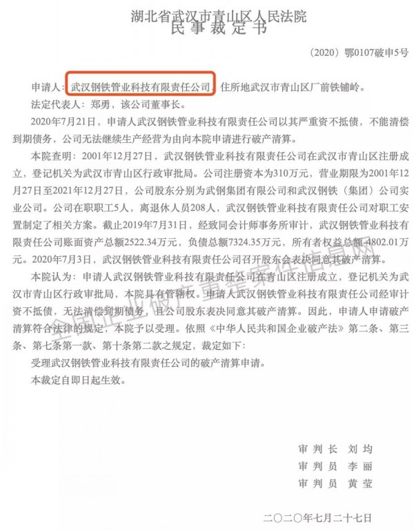 2020年7月27日-29日,繼披露4家鋼企破產(chǎn)清算后,全國(guó)企業(yè)破產(chǎn)重組案件信息網(wǎng)又公布2家鋼鐵企業(yè)的破產(chǎn)情況。