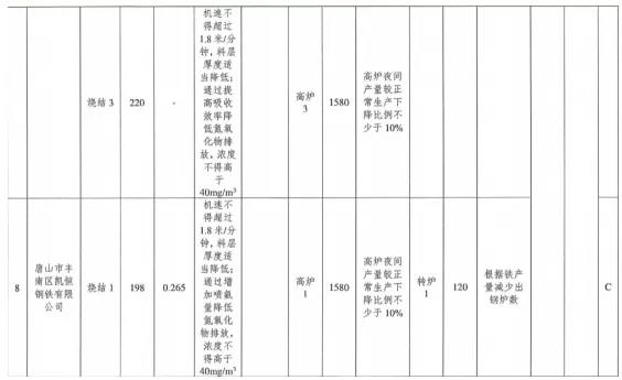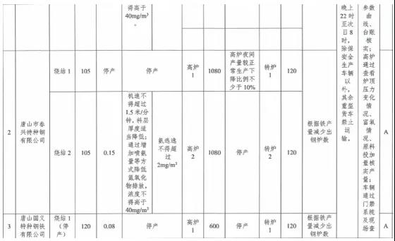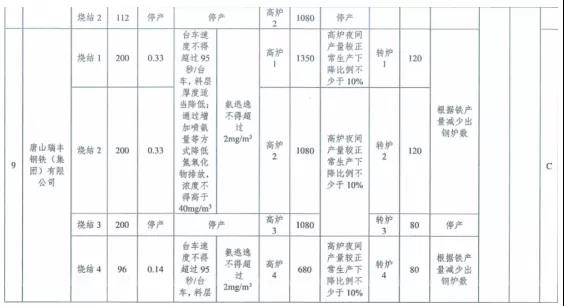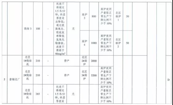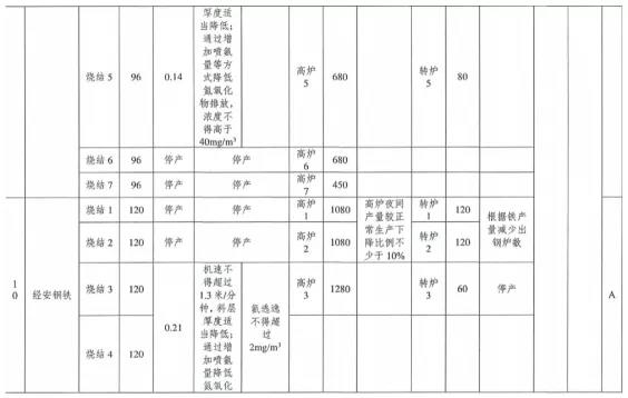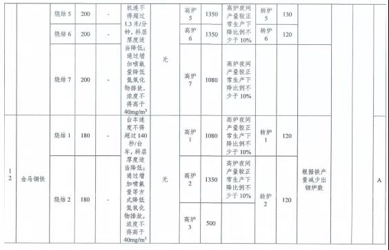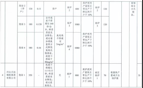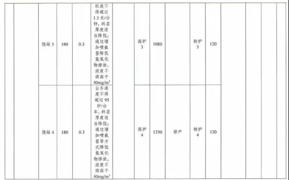 ①每日22時至次日8時,燒結(jié)機(jī)機(jī)速不得超過1. 5米/分鐘,料層厚度適當(dāng)降低,通過提高氧化、吸收效率降低氮氧化物排放,氮氧化物小時均值濃度不得高于40mg/m3; 高爐夜間產(chǎn)量較正常生產(chǎn)下降比例不少于10%;煉鋼工序根據(jù)鐵產(chǎn)量減少出鋼爐數(shù);除保安全生產(chǎn)車輛以外,其余重型貨車禁止運(yùn)輸。