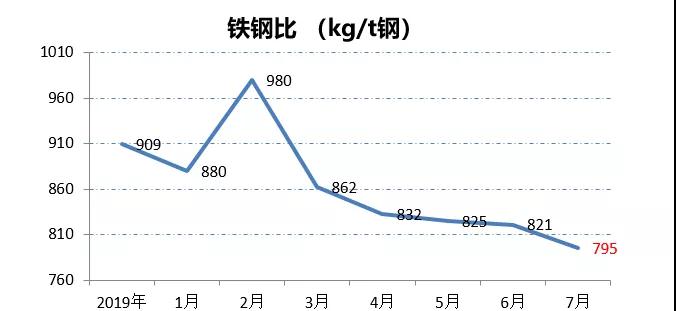 鐵鋼比是鋼鐵廠最為重要的技術(shù)經(jīng)濟(jì)指標(biāo)之一。2019年重慶鋼鐵綜合鐵鋼比為909kg/t鋼,2020年通過(guò)找差距、補(bǔ)短板,“全面對(duì)標(biāo)找差,狠抓降本增效”系統(tǒng)提升企業(yè)市場(chǎng)競(jìng)爭(zhēng)力,逐步推進(jìn)降低鐵鋼比工作,7月鐵鋼比795kg/t鋼,首次實(shí)現(xiàn)“破八進(jìn)七”。