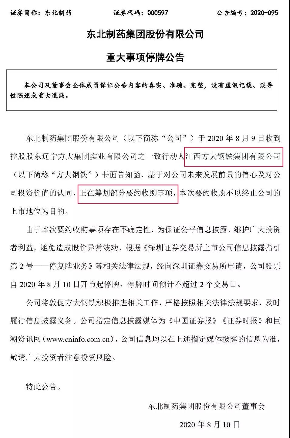 8月10日,東北制藥發(fā)布《重大事項(xiàng)停牌公告》(以下簡稱“《公告》”)。