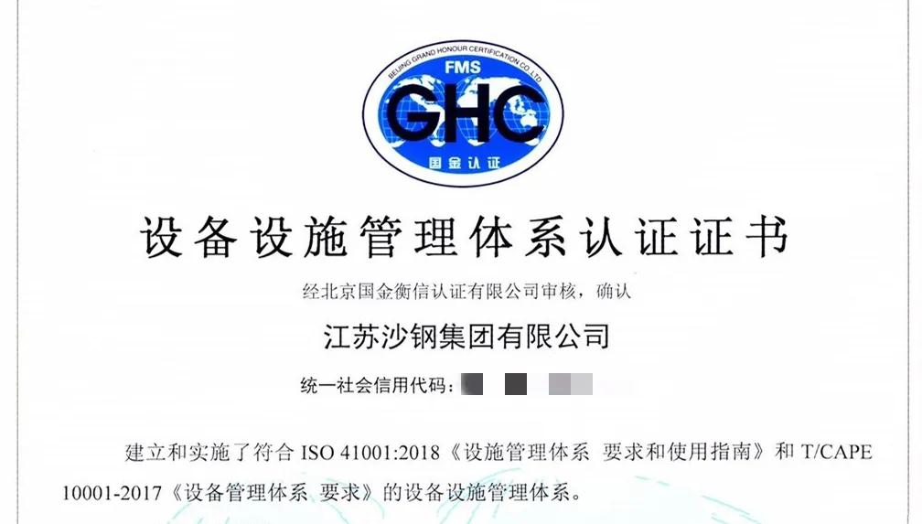 據(jù)悉,設(shè)備設(shè)施管理體系認(rèn)證,是以國際標(biāo)準(zhǔn)化組織頒布的ISO41001:2018《設(shè)施管理體系要求及使用指南》和中國設(shè)備管理協(xié)會發(fā)布的T/CAPE10001-2017《設(shè)備管理體系要求》為依據(jù),開展的第三方管理體系認(rèn)證活動。2019年,沙鋼等4家單位成為鋼鐵行業(yè)第一批設(shè)備設(shè)施管理體系試點(diǎn)企業(yè),沙鋼率先完成設(shè)備設(shè)施管理體系認(rèn)證。