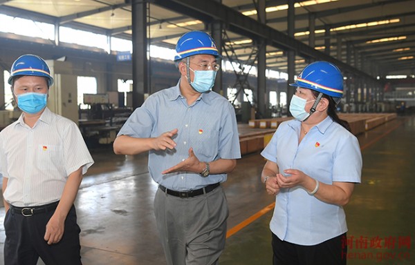 在濟(jì)源示范區(qū)中原特鋼公司、濟(jì)源鋼鐵集團(tuán),尹弘走進(jìn)軋鋼車間、研發(fā)部門、能源環(huán)境監(jiān)測中心,了解生產(chǎn)經(jīng)營、技術(shù)創(chuàng)新、節(jié)能減排等情況。在觀看濟(jì)源鋼鐵集團(tuán)“5G+AR遠(yuǎn)程指導(dǎo)”技術(shù)演示時,他勉勵企業(yè)推進(jìn)數(shù)字化、網(wǎng)絡(luò)化、智能化改造,不斷提升全要素生產(chǎn)率。