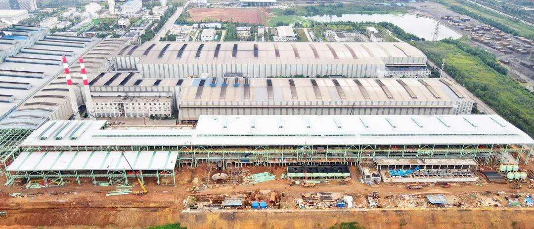 4月27日,高線廠房首根鋼柱順利吊裝,8月3日,主體構(gòu)件和屋架吊裝完成;7月23日,廠房屋面開始鋪裝,8月28日,熱爐跨、主軋跨、成品跨近2萬(wàn)平方米的屋面彩鋼瓦鋪裝完成。
