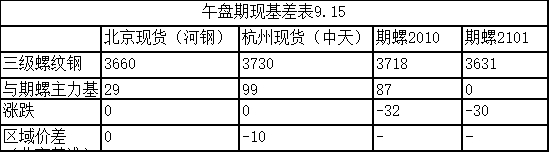 消息面:8月宏觀地產(chǎn)鋼鐵數(shù)據(jù)今天基本出全了!;萊鋼永鋒建材銷售價格下調(diào)20至3740元;9月15日,杭州昨天出庫3.5 萬噸,螺紋庫存93.7 萬噸;