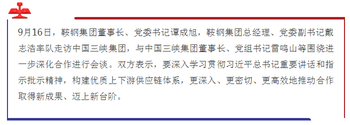 鞍鋼集團(tuán)與中國(guó)三峽集團(tuán)將在多領(lǐng)域深化合作 構(gòu)建優(yōu)質(zhì)供應(yīng)鏈體系