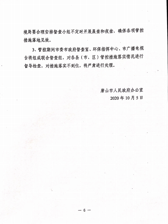 3、管控期間市委督查室、環(huán)保指揮中心、市廣播電視臺將組成聯(lián)合督查組,對各縣(市、區(qū))管控措施落實情況進行督導(dǎo)檢查,對措施落實不到位,將嚴肅進行處理。