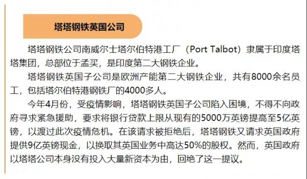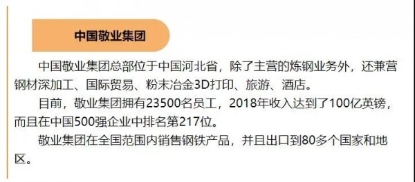 敬業(yè)集團(tuán)如果確實(shí)收購塔塔鋼鐵英國公司,則它將重組擁有共同所有權(quán)的英國最大的塔爾伯特港和斯肯索普鋼鐵廠。在2016年以前,斯肯索普鋼鐵廠一直為塔塔鋼鐵所有,后來轉(zhuǎn)手至英國投資公司Greybull Capital,后改名為英國鋼鐵有限責(zé)任公司(British Steel),并在今年3月由敬業(yè)集團(tuán)收購。
