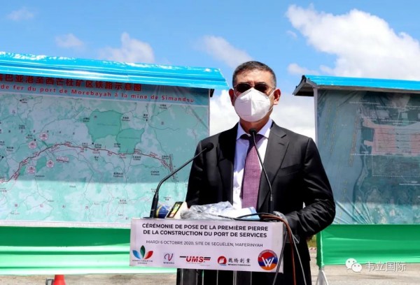 2020年10月6日幾內(nèi)亞馬瑞巴亞訊——今天,贏聯(lián)盟西芒杜項(xiàng)目港口奠基儀式在此圓滿舉行(上圖)。出席奠基儀式的嘉賓有:幾內(nèi)亞礦業(yè)地質(zhì)部高級(jí)代表 Ahmed Keita Maferenyah先生、贏聯(lián)盟總指揮孫修順先生、幾內(nèi)亞馬弗里尼亞副區(qū)長(zhǎng)Moussapha Toure先生、贏聯(lián)盟西芒杜項(xiàng)目CEO呂曉慧女士和贏聯(lián)盟博凱礦業(yè)公司總經(jīng)理弗雷德里克-布齊蓋先生等。