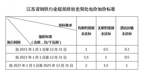 △江蘇省鋼鐵行業(yè)超低排放差別化電價加價標準