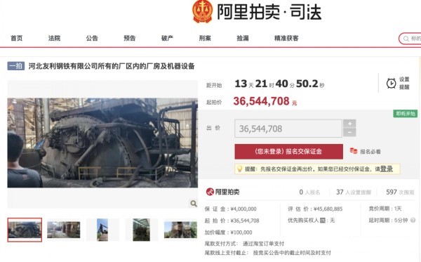 關(guān)于河北友利鋼鐵有限公司所有的廠區(qū)內(nèi)的廠房及機器設(shè)備的拍賣公告