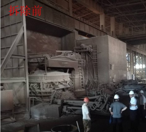 2、江陰興澄特種鋼鐵有限公司于2017年10月11日到10月20日期間完成1臺40噸電爐拆除工作,拆除前后照片附后。