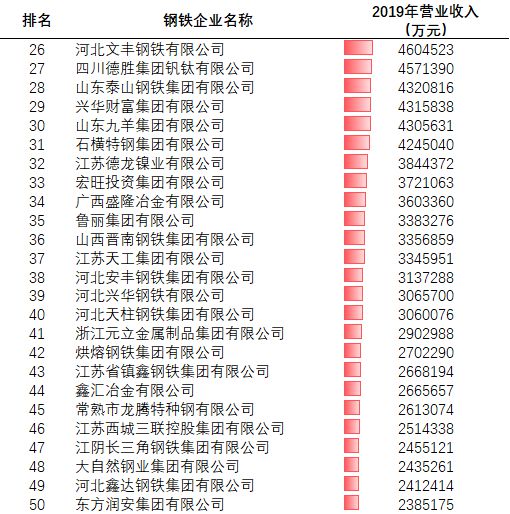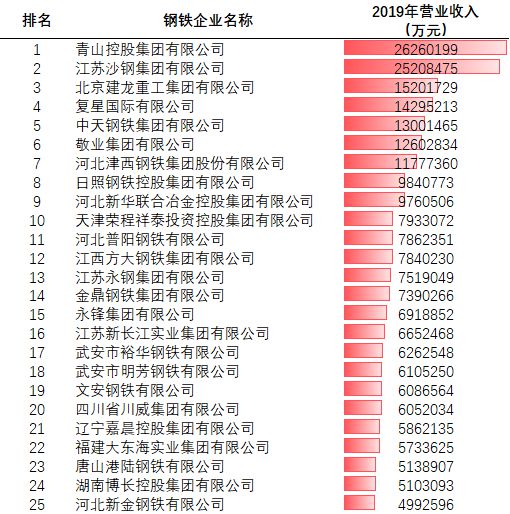 除了中國寶武、河鋼集團(tuán)、鞍鋼集團(tuán)、首鋼集團(tuán)等巨頭外,行業(yè)里還有一大批實力不俗的民營企業(yè),產(chǎn)量占比超過六成。究竟誰才是“領(lǐng)頭羊”,2020年百強民營鋼鐵企業(yè)排名可以給我們答案。根據(jù)各家民營鋼鐵企業(yè)去年也就是2019年度營業(yè)收入進(jìn)行排名,前100名如下: