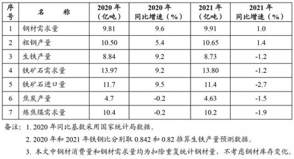 (2020年和2021年中國鋼鐵需求預測情況)