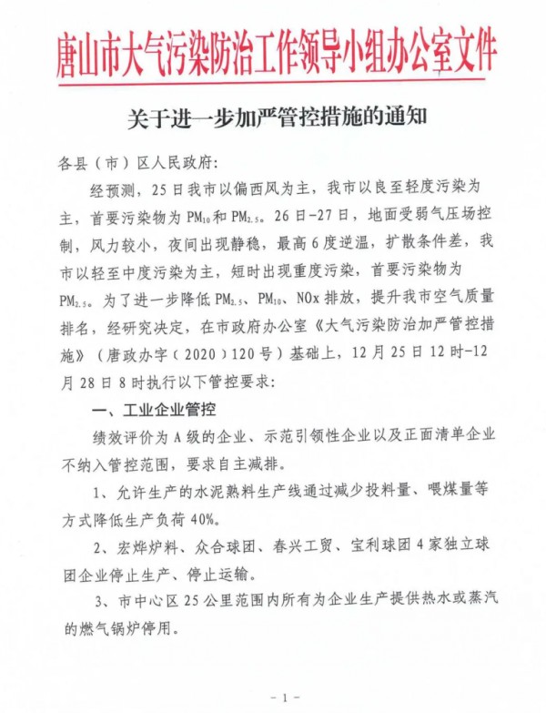 為減輕重污染過程,保障人民群眾身體健康,結(jié)合滄州市實(shí)際,經(jīng)市政府研究決定,滄州市于12月25日18時(shí)發(fā)布重污染天氣紅色預(yù)警,啟動(dòng)Ⅰ級應(yīng)急響應(yīng),解除時(shí)間根據(jù)會商研判結(jié)果另行通知。與工業(yè)相關(guān)措施如下: