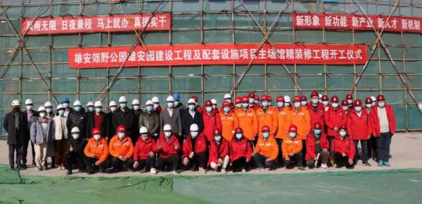 雄安郊野公園主場館精裝修工程開工儀式現(xiàn)場。中國雄安官網(wǎng)發(fā)