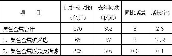 鋼鐵行業(yè)固定資產(chǎn)投資增幅回落。國(guó)家統(tǒng)計(jì)局?jǐn)?shù)據(jù)顯示,1月~2月份,鋼鐵行業(yè)完成固定資產(chǎn)投資370億元,同比增長(zhǎng)2.3%,增速比去年同期回落1.1個(gè)百分點(diǎn)。其中,黑色金屬礦采選業(yè)完成投資65億元,同比增長(zhǎng)14.2%,增速比上年同期提高2.0個(gè)百分點(diǎn);黑色冶煉及壓延業(yè)完成投資305億元,同比下降1.8個(gè)百分點(diǎn)(見右表)??梢钥闯?,國(guó)家嚴(yán)控產(chǎn)能過剩行業(yè)投資項(xiàng)目取得一定成效。