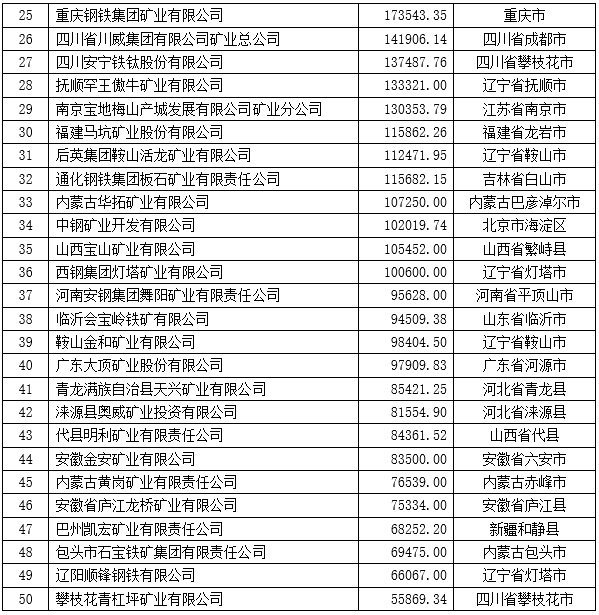 中礦協(xié)發(fā)布2020年中國冶金礦山企業(yè)50強(qiáng)名單
