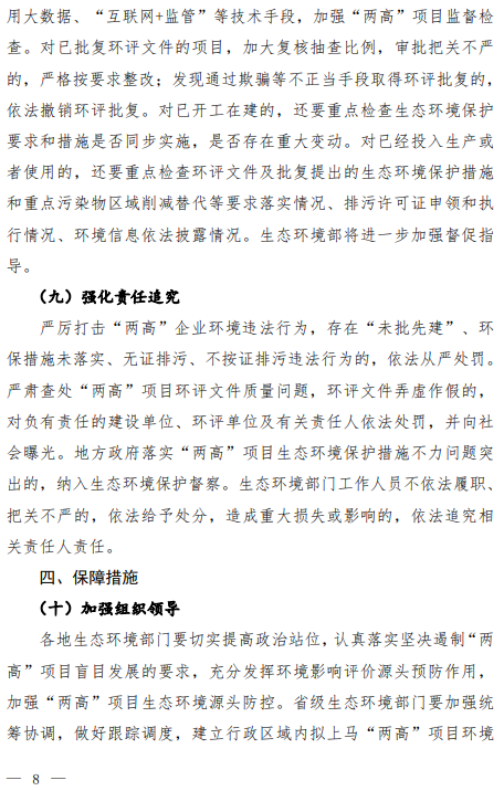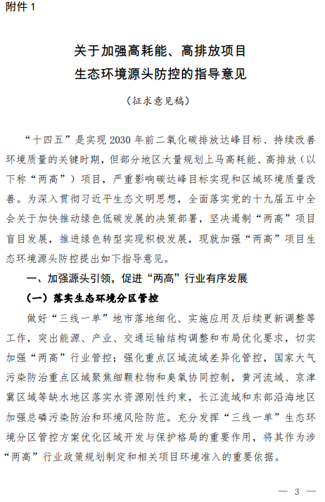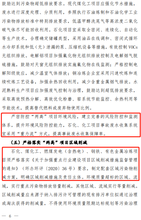 文件要求,依法推進(jìn)有關(guān)綜合性規(guī)劃和工業(yè)、能源等專項(xiàng)規(guī)劃的環(huán)評(píng)工作,充分發(fā)揮規(guī)劃環(huán)評(píng)的調(diào)控、引領(lǐng)作用,落實(shí)區(qū)域環(huán)境保護(hù)目標(biāo)和“三線一單”要求,充分考慮區(qū)域和行業(yè)碳達(dá)峰目標(biāo)約束,從嚴(yán)控發(fā)展規(guī)模、優(yōu)化規(guī)劃布局、產(chǎn)業(yè)結(jié)構(gòu)與實(shí)施時(shí)序等方面,為火電、石化、煤化工、鋼鐵、有色金屬冶煉、水泥、鑄造等“兩高”行業(yè)有關(guān)規(guī)劃提供決策支撐。