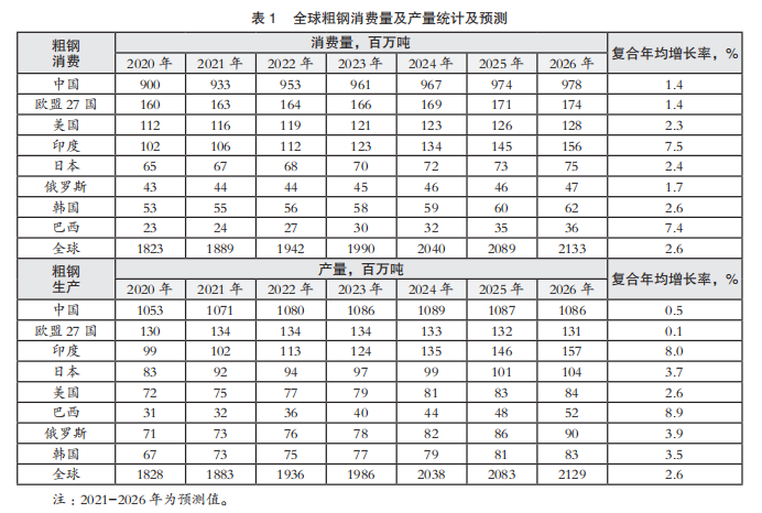 全球粗鋼生產(chǎn)消費(fèi)回顧與展望