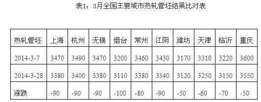 下圖為3月全國主要城市管坯具體價(jià)格詳見下表: