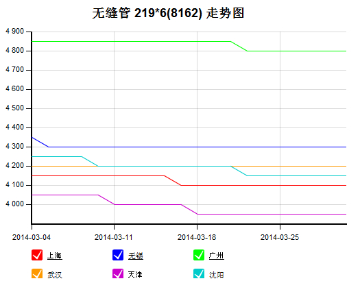 圖14:2014年3月份無縫管市場219*6(8162)價(jià)格走勢(單位:元/噸)