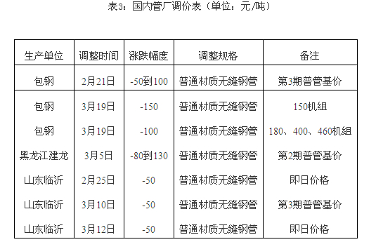備注:價(jià)格調(diào)整詳情詳見我網(wǎng)鋼管頻道出廠價(jià)格欄目(單位:元/噸)