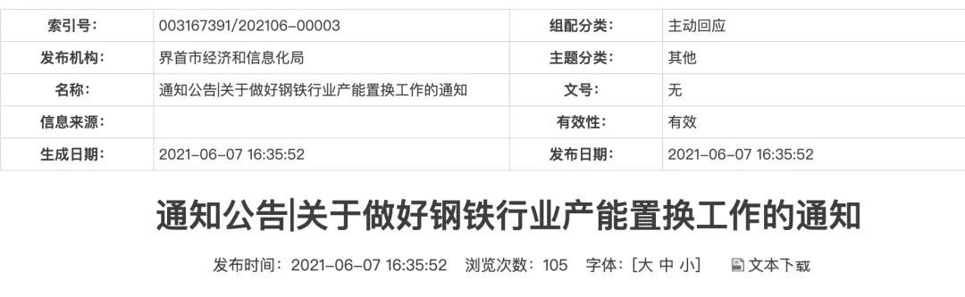 根據(jù)工業(yè)和信息化部新修訂的《鋼鐵行業(yè)產(chǎn)能置換實施辦法》(工信部原〔2021〕46號,以下簡稱《辦法》,詳見工業(yè)和信息化部門戶網(wǎng)站),結(jié)合我省實際,現(xiàn)就我省鋼鐵行業(yè)產(chǎn)能置換工作有關(guān)事項通知如下: