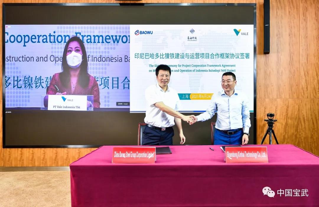 中國(guó)寶武總工程師、總經(jīng)理助理、總法律顧問(wèn),鑫海科技總工程師,淡水河谷基本金屬業(yè)務(wù)執(zhí)行副總裁、黑色金屬業(yè)務(wù)執(zhí)行副總裁等出席儀式。中國(guó)寶武鋼鐵業(yè)中心、戰(zhàn)略規(guī)劃部、海外部、法務(wù)部、鎳鐵項(xiàng)目組以及鑫??萍嫉南嚓P(guān)人員參加簽約儀式。