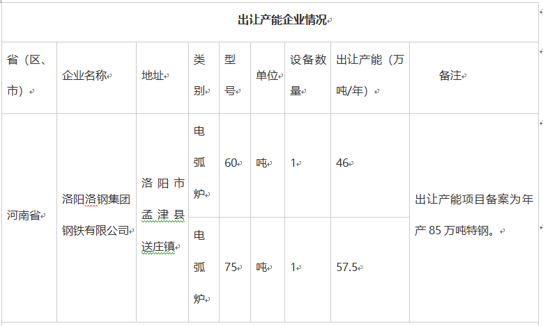 洛陽洛鋼集團鋼鐵有限公司產(chǎn)能出讓公示