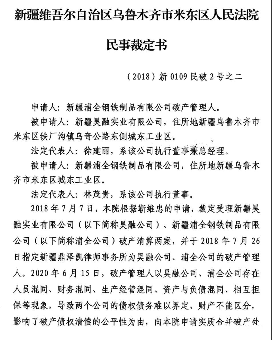 阿里拍賣網(wǎng)消息,新疆浦全鋼鐵制品有限公司破產(chǎn)清算,相關(guān)資產(chǎn)將于2021年7月2日上午10:00公開拍賣!