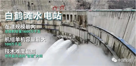 白鶴灘水電站總裝機容量1600萬千瓦,共安裝16臺我國自主研制的全球單機容量最大功率100萬千瓦水輪發(fā)電機組。電站主體工程于2017年7月全面開工建設,全部機組將于2022年7月投產發(fā)電。電站全部建成投產后,將成為僅次于三峽工程的世界第二大水電站。白鶴灘水電站將與烏東德、溪洛渡、向家壩梯級電站及三峽、葛洲壩水電站共同構成一條世界上最大的清潔能源走廊,對改善能源結構、助推“碳達峰”“碳中和”戰(zhàn)略落實,具有重要意義。中國寶武知重負重,在白鶴灘水電站建設上留下堅實的足跡,為中國綠色發(fā)展注入蓬勃動力,為全球“雙碳”目標的實現(xiàn)不懈努力。