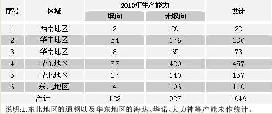電工鋼產(chǎn)能利用率增加。2013年,我國具備冷軋電工鋼生產(chǎn)能力的企業(yè)約有32家,與2012年相比增加了6家,其中有4家暫停生產(chǎn)(不含熱軋電工鋼);合計產(chǎn)能約為1049萬噸(不含熱軋電工鋼),與2012年相比,增加產(chǎn)能159萬噸,增幅為17.87%,其中無取向電工鋼產(chǎn)能927萬噸、取向電工鋼產(chǎn)能122萬噸。與2012年同期相比,無取向電工鋼產(chǎn)能增加152萬噸,增幅為19.61%;取向電工鋼產(chǎn)能增加7萬噸,增幅為6.09%。電工鋼產(chǎn)能利用率為76.74%,與前兩年相比有一定幅度的增長,個別企業(yè)的電工鋼產(chǎn)能利用率已達(dá)到100%或超過設(shè)計產(chǎn)能。
