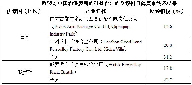 2013年2月,歐盟對原產(chǎn)于中國和俄羅斯的硅鐵進(jìn)行反傾銷日落復(fù)審立案調(diào)查。