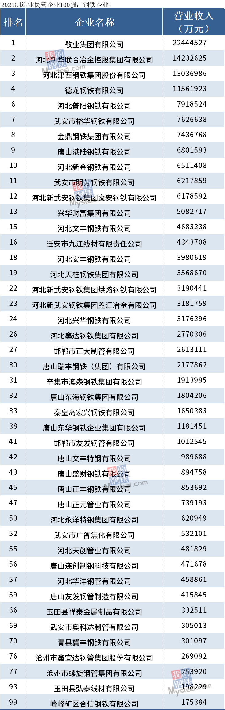 40家鋼企上榜2021河北省民營企業(yè)100強