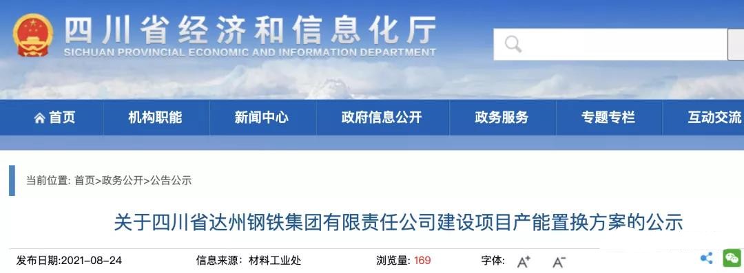 按照《國務(wù)院關(guān)于化解產(chǎn)能嚴(yán)重過剩矛盾的指導(dǎo)意見》(國發(fā)〔2013〕41號)、《國務(wù)院關(guān)于鋼鐵行業(yè)化解過剩產(chǎn)能實(shí)現(xiàn)脫困發(fā)展的意見》(國發(fā)〔2016〕6號)、《工業(yè)和信息化部關(guān)于印發(fā)鋼鐵水泥玻璃行業(yè)產(chǎn)能置換實(shí)施辦法的通知》(工信部原〔2017〕337號)和《工業(yè)和信息化部關(guān)于印發(fā)鋼鐵行業(yè)產(chǎn)能置換實(shí)施辦法的通知》(工信部原〔2021〕46號)要求,現(xiàn)將四川省達(dá)州鋼鐵集團(tuán)有限責(zé)任公司減量提質(zhì)產(chǎn)能置換方案予以公示,歡迎社會公眾進(jìn)行監(jiān)督。公示期為:2021年8月24日-2021年9月18日。若對公示內(nèi)容有異議,請?jiān)诠酒趦?nèi)向經(jīng)濟(jì)和信息化廳反映。