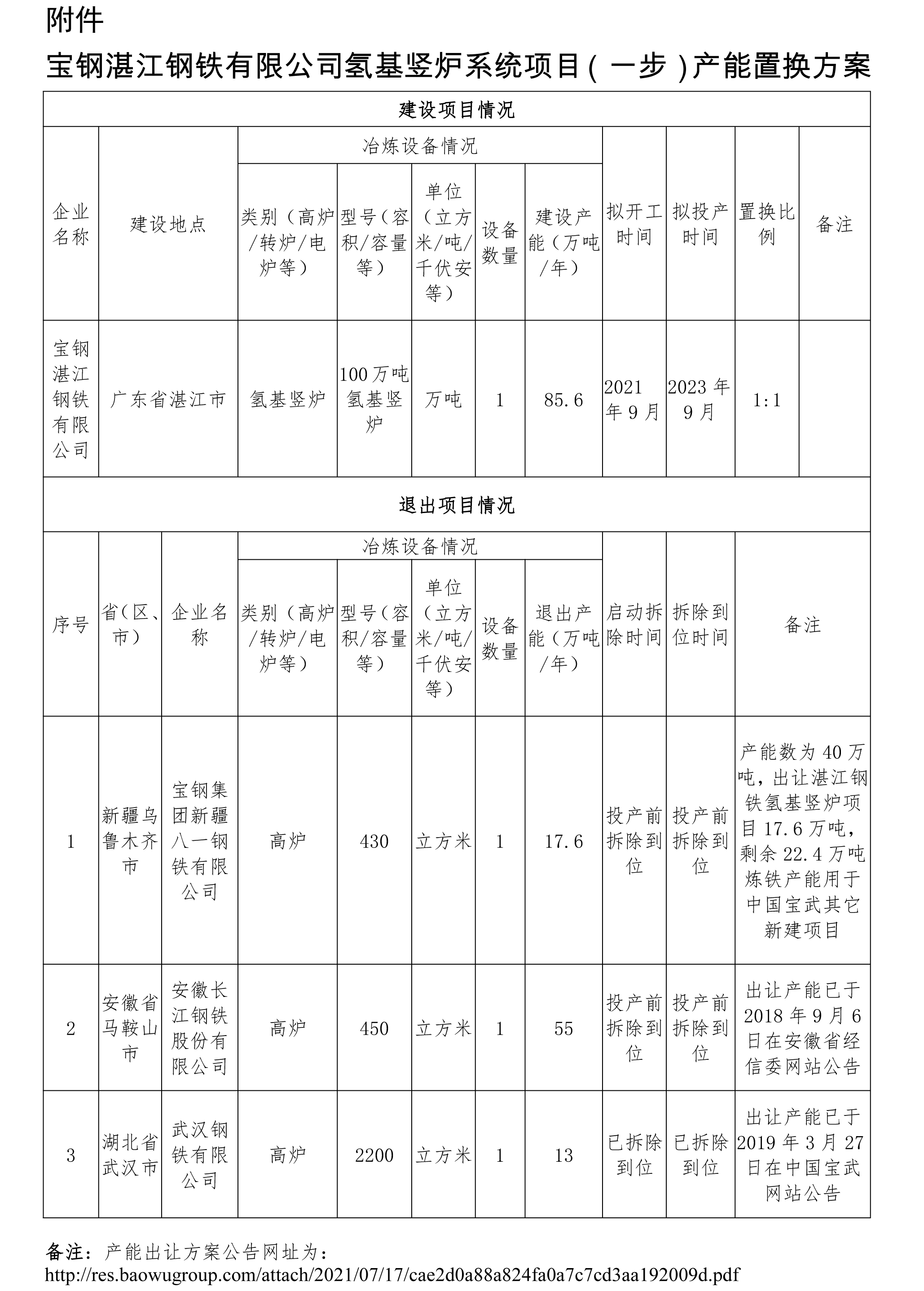 附件:寶鋼湛江鋼鐵有限公司氫基豎爐系統(tǒng)項(xiàng)目(一步)產(chǎn)能置換方案.doc