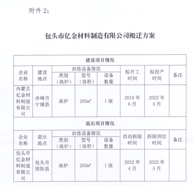 1.赤峰市工業(yè)和信息化局關(guān)于對(duì)包頭市億金材料制造有限公司1座205立方米高米爐搬遷至寧城縣產(chǎn)業(yè)轉(zhuǎn)移方案予以公示公告的請(qǐng)示