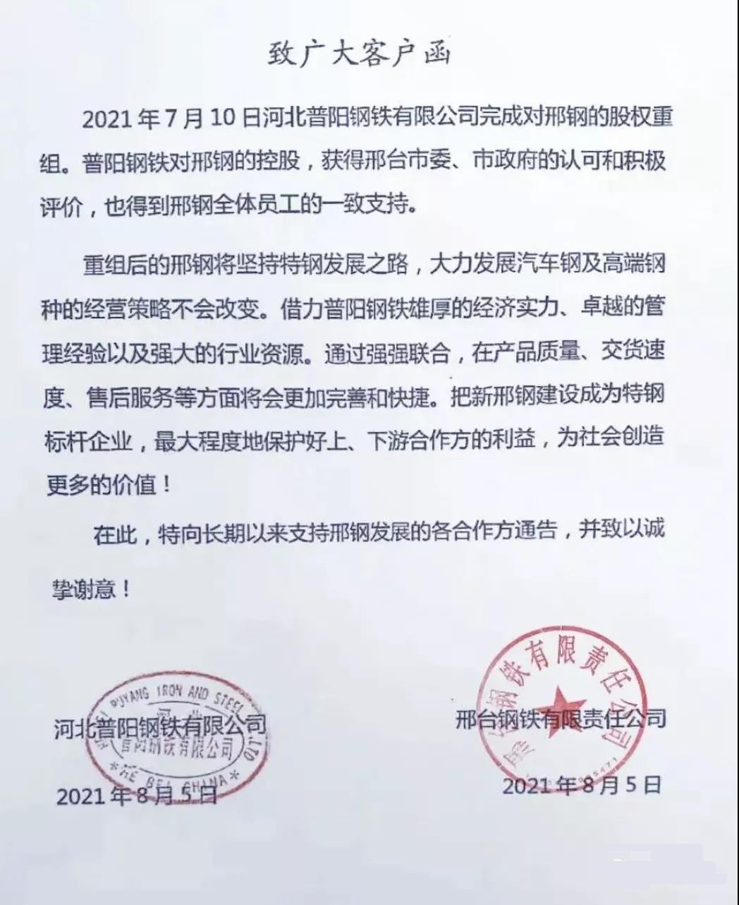 2、普陽鋼鐵控股邢鋼