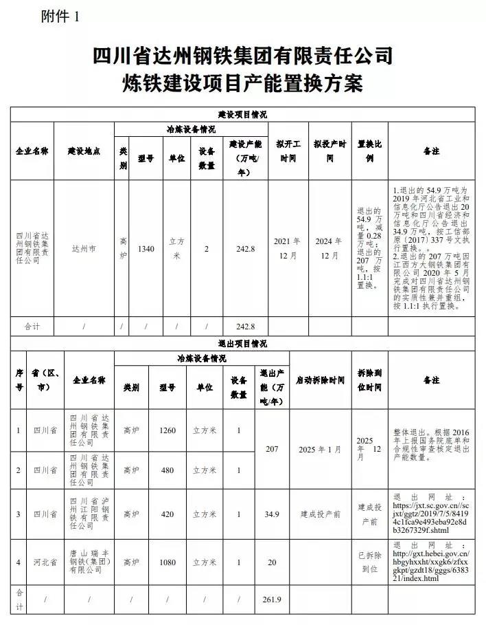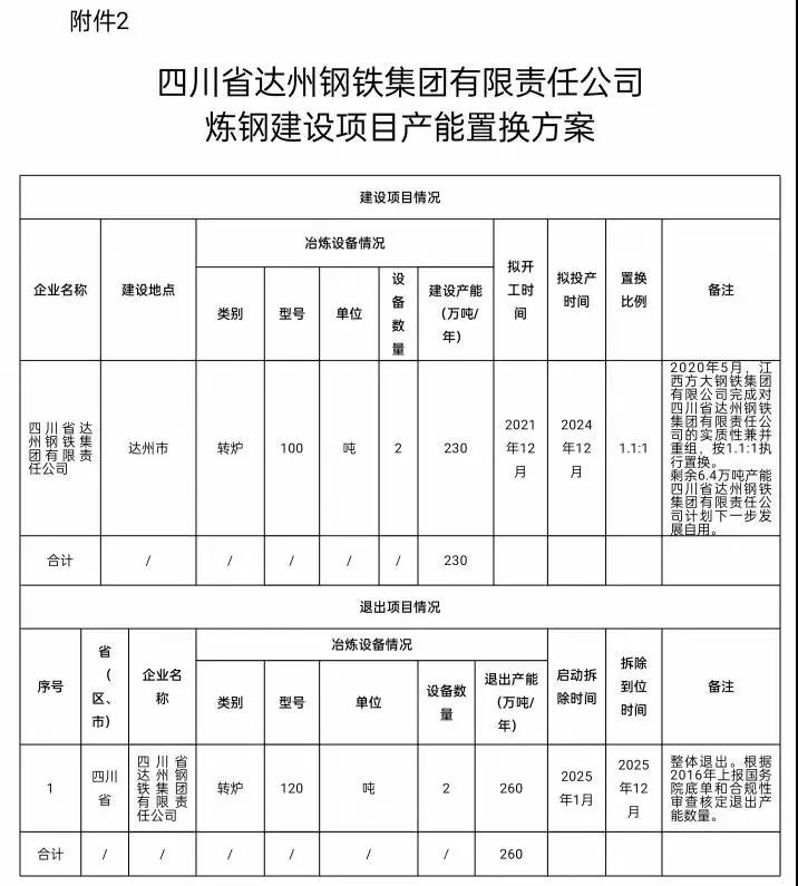 按照《國務院關于化解產能嚴重過剩矛盾的指導意見》(國發(fā)〔2013〕41號)、《國務院關于鋼鐵行業(yè)化解過剩產能實現脫困發(fā)展的意見》(國發(fā)〔2016〕6號)、《工業(yè)和信息化部關于印發(fā)鋼鐵水泥玻璃行業(yè)產能置換實施辦法的通知》(工信部原〔2017〕337號)和《工業(yè)和信息化部關于印發(fā)鋼鐵行業(yè)產能置換實施辦法的通知》(工信部原〔2021〕46號)要求,我廳于2021年8月24日-2021年9月18日對四川省達州鋼鐵集團有限責任公司建設項目產能置換方案進行了公示,公示期無異議,現將四川省達州鋼鐵集團有限責任公司建設項目產能置換方案予以公告,歡迎社會公眾進行監(jiān)督。