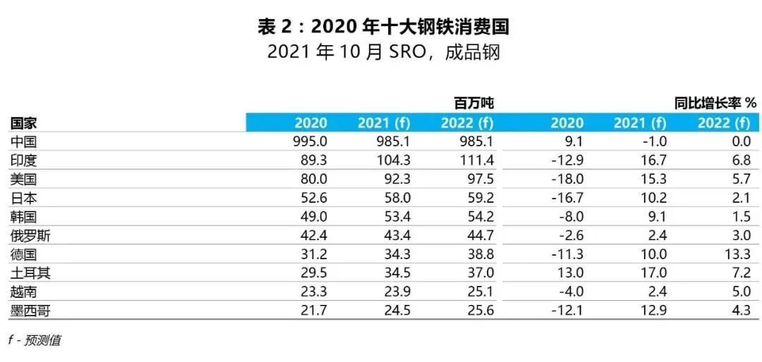 2021年,在大宗商品價格和國際貿(mào)易恢復(fù)的助力下,發(fā)展中經(jīng)濟體(不含中國)的鋼鐵需求繼續(xù)恢復(fù)。不過,最新出現(xiàn)的幾波疫情,再加上疫苗的低接種水平和國際旅游業(yè)的緩慢恢復(fù),都給發(fā)展中經(jīng)濟體帶來限制。2022年,隨著疫苗接種的推進(jìn),預(yù)計發(fā)展中經(jīng)濟體的狀況將會改善,但疫情將會給發(fā)展中經(jīng)濟體帶來長期影響,包括財政狀況的弱化和結(jié)構(gòu)化挑戰(zhàn)的累積。